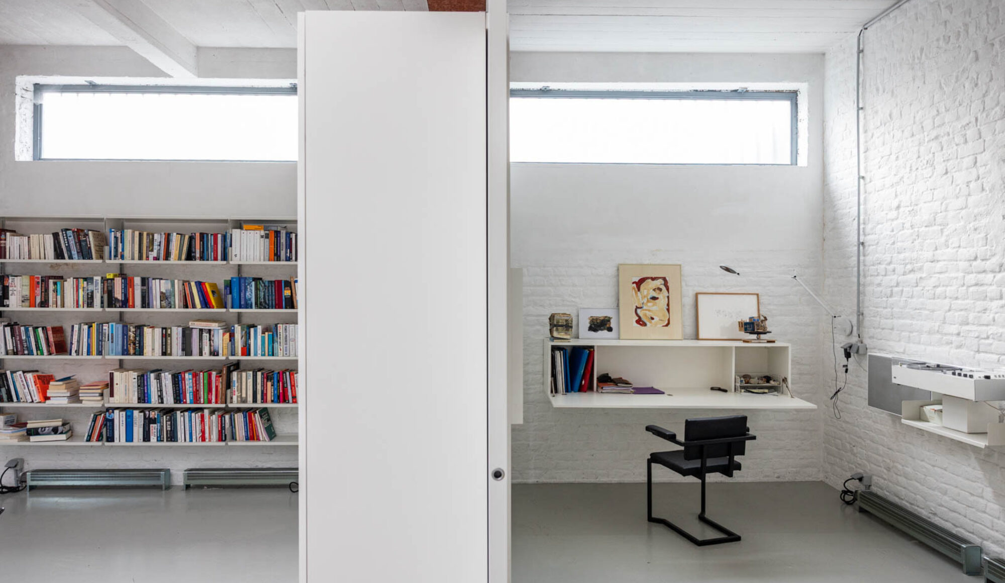 Dans une rue latérale discrète du centre-ville animé se cache une propriété singulière, entièrement soustraite au monde extérieur tout en formant son propre univers. Derrière un portail privé, un monde intérieur surprenant s’ouvre, avec un passage rectiligne permettant de garer trois voitures, menant à une cour intérieure intimiste. La maison elle-même, répartie sur deux niveaux, reflète la signature marquée de l’architecte, designer et urbaniste Pierre Lallemand. Dans le respect de l’esprit industriel du bâtiment, il a conçu une habitation à la fois sculpturale, habitable et intemporelle — une rare traduction de sa vision multidisciplinaire dans un cadre résidentiel privé.