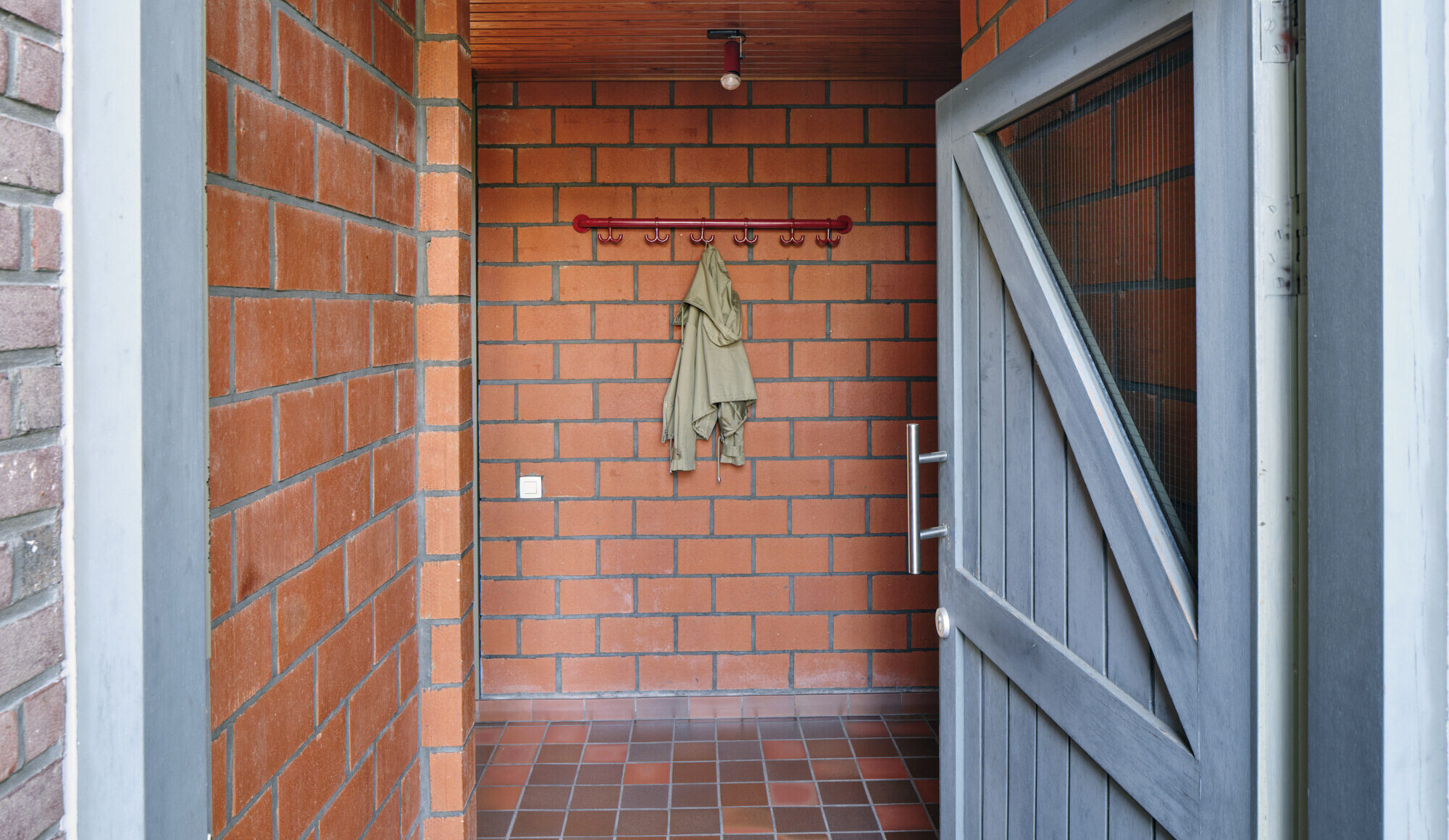 Cette maison ne cherche pas à s’imposer, mais à s’inscrire avec discrétion dans le paysage. Les volumes asymétriques de la toiture, la brique brute et le jeu d’ombres et de lumières révèlent une architecture maîtrisée, respectueuse de l’échelle et de la matière. À l’intérieur, les espaces de vie ouverts s’enchaînent avec fluidité, ponctués de touches de couleur inattendues – une porte vert vif ou bleu profond – qui insufflent chaleur et personnalité à l’ensemble sobre et cohérent.