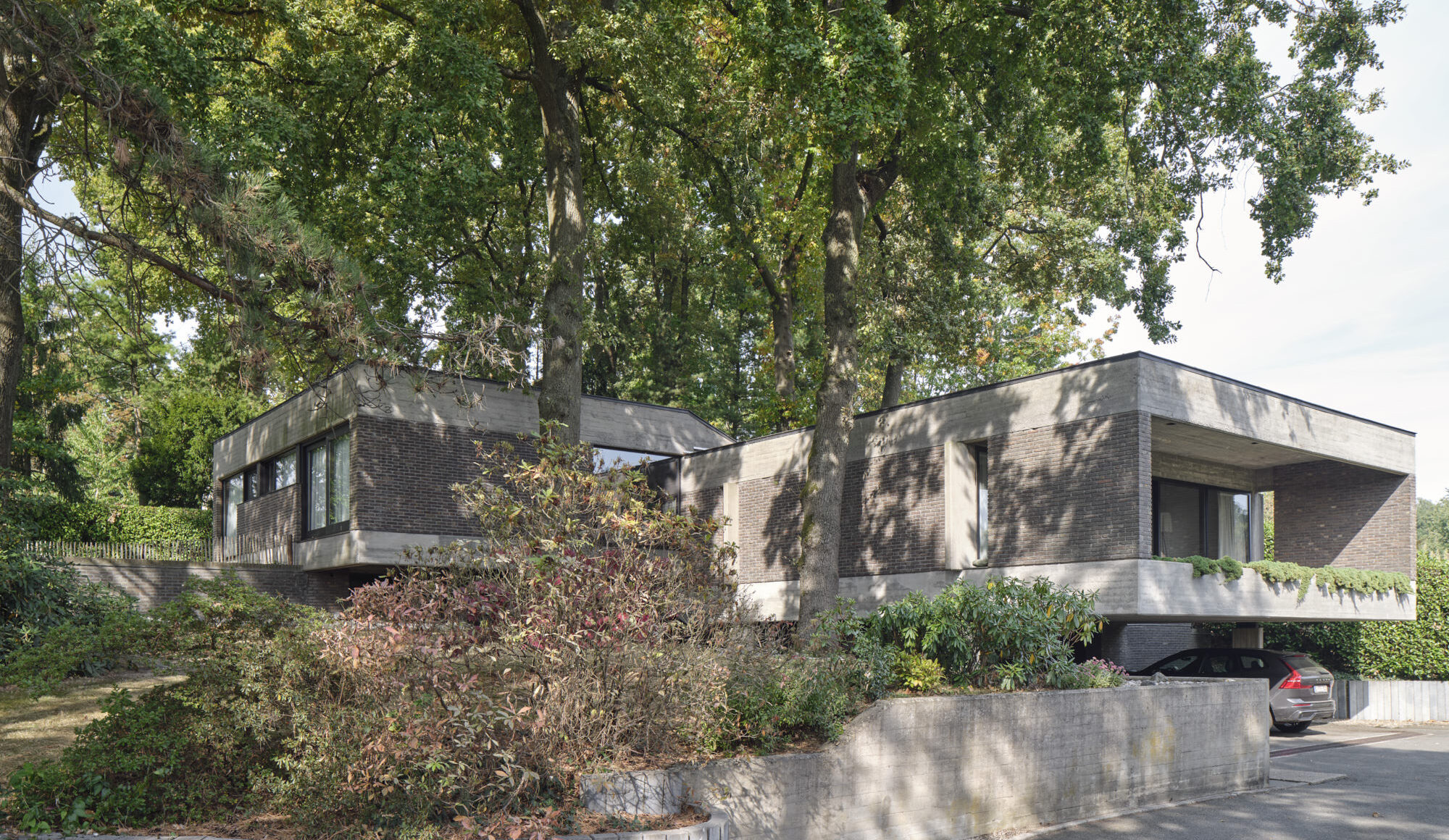 Dans un endroit paisible à la lisière de Hekelgem, au cœur d’un jardin mature parfaitement intégré dans le paysage vallonné, se trouve une habitation à la fois puissante et discrète. Cette maison d’architecte au style brutaliste affirmé a été conçue dans les années soixante par Luc Van den Broeck (1936), un architecte dont l’œuvre figure aujourd’hui parmi les plus précieuses du modernisme flamand d’après-guerre. Diplômé de l’Institut Saint-Luc à Gand et lauréat notamment du prix « La Maison Européenne » en 1964, il a conçu des habitations dans lesquelles l'expression brute des matériaux renforce, plutôt qu’elle ne contredit, la douceur spatiale.