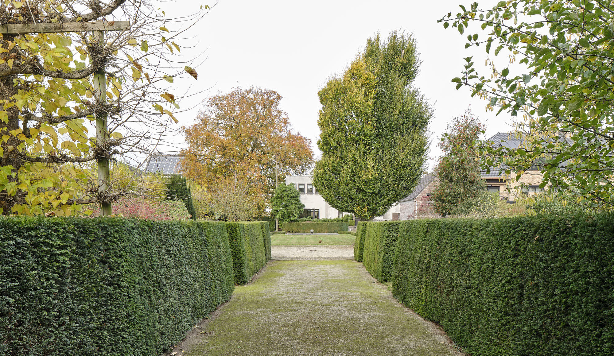 Autour de la maison s’étend un parc de plus de 27 ares, peuplé d’arbres matures, de plantations élégantes et de diverses terrasses ensoleillées. Ce jardin n’est pas un simple décor, mais un élément essentiel du concept résidentiel. Il renforce l’intimité de la maison et crée un tampon naturel vis‑à‑vis du monde extérieur. Bien que située en plein centre de Bree, elle jouit d’un calme rare – une ambiance de retrait et de recueillement presque monastique.