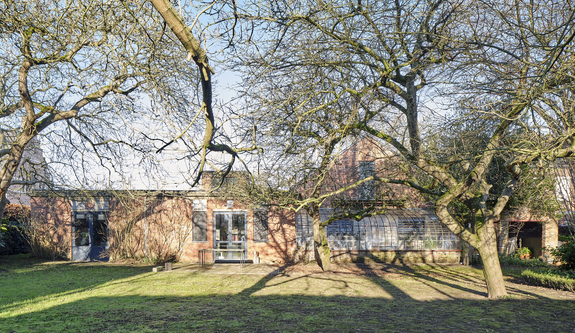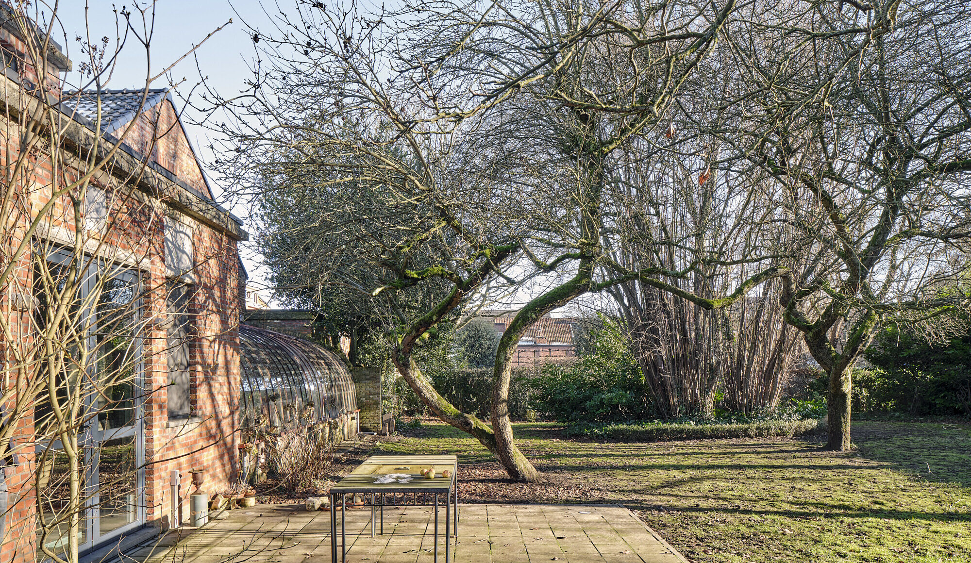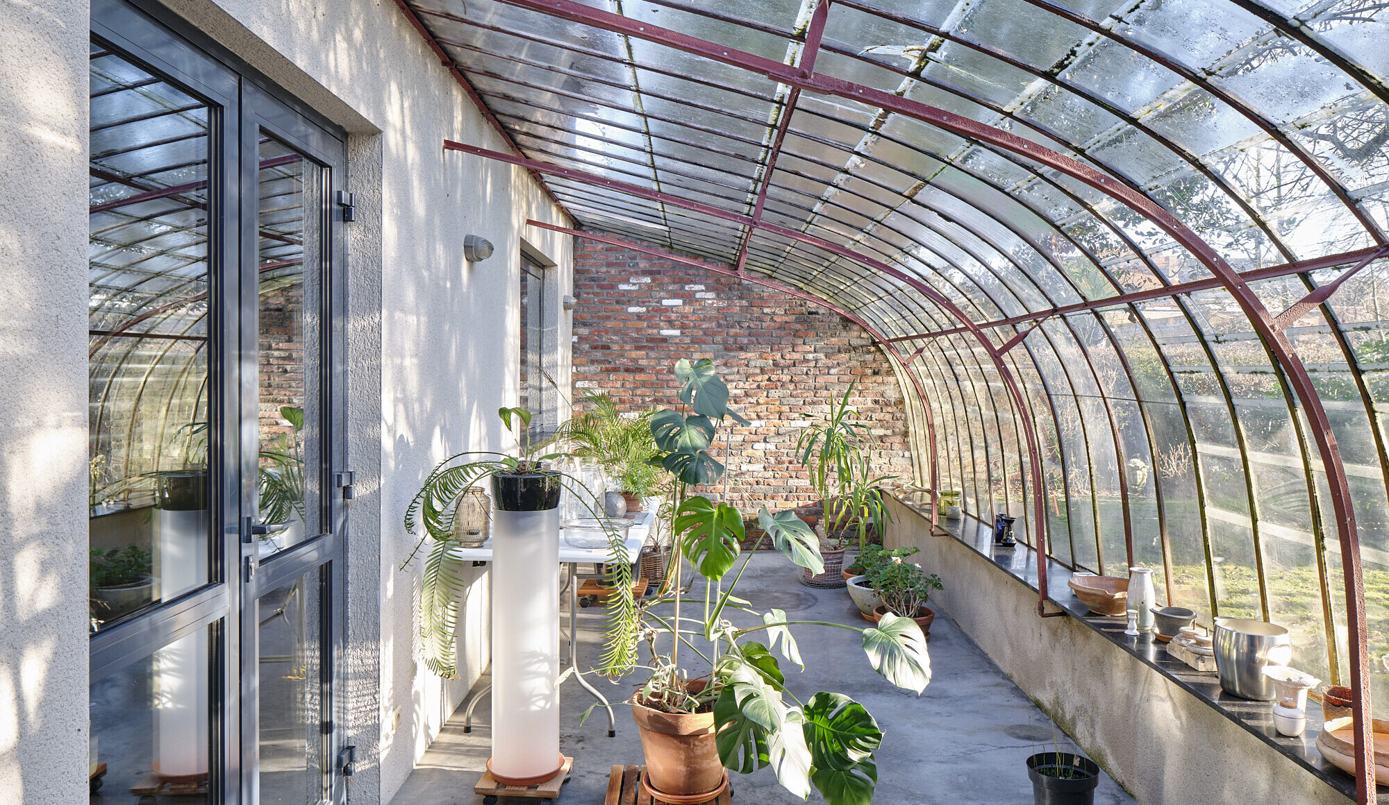 L’élément phare : une serre originale en fer forgé ; élégant espace de transition entre intérieur et jardin. Cette serre enrichit l’expérience de vie — un lieu pour lire, petit déjeuner ou simplement exister, toute l’année.