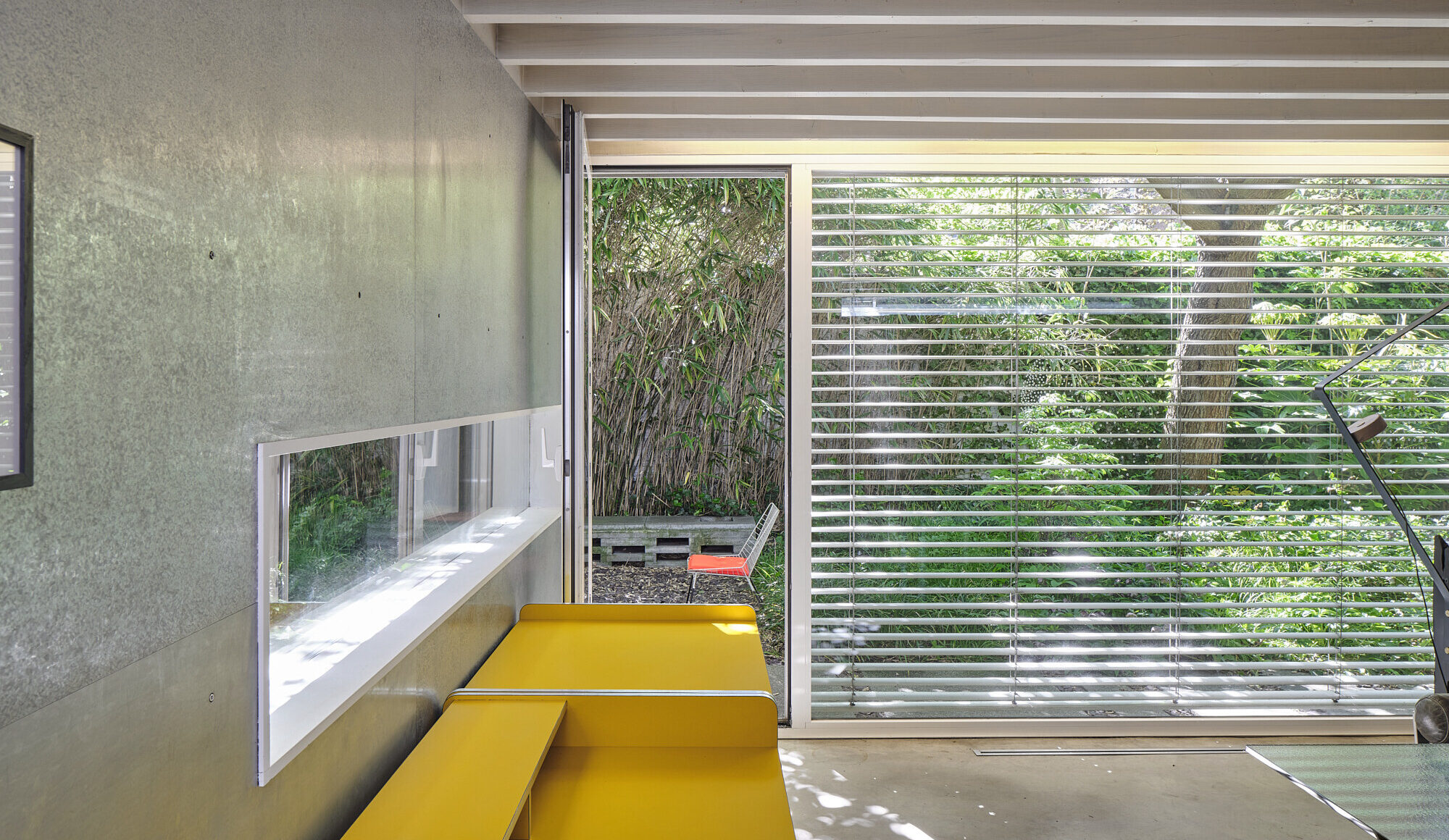 Depuis la galerie, on pénètre dans l’espace de vie principal, où un escalier ouvert et des transitions bien pensées jouent sur la fluidité et la coconisation. La maison comprend une chambre avec salle de bains, une cuisine ouverte avec coin repas, et plusieurs espaces polyvalents alliant travail et habitation. Le grand grenier peut être aménagé en une ou plusieurs chambres supplémentaires. De larges fenêtres et un patio insufflent lumière et transparence, sans aucun vis-à-vis.