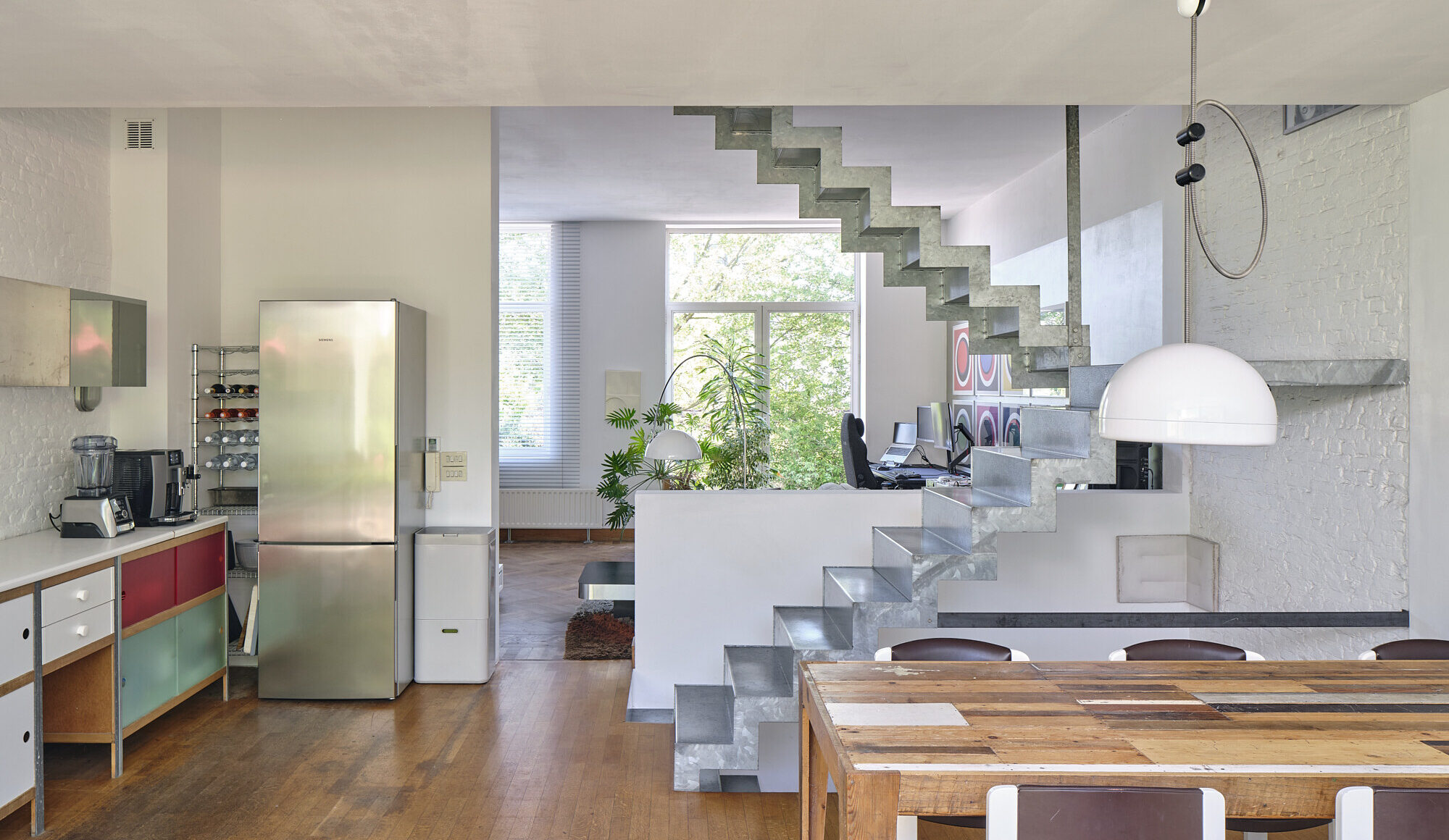 Derrière une discrète façade en brique de la Stanleystraat se cache un univers résidentiel d’une surprenante luminosité et ouverture. Ce qui était initialement un projet de cohabitation et d’atelier est devenu une maison au caractère affirmé. Ce lieu, empreint de créativité et de strates, propose un agencement fluide entre vivre, exposer et réfléchir.