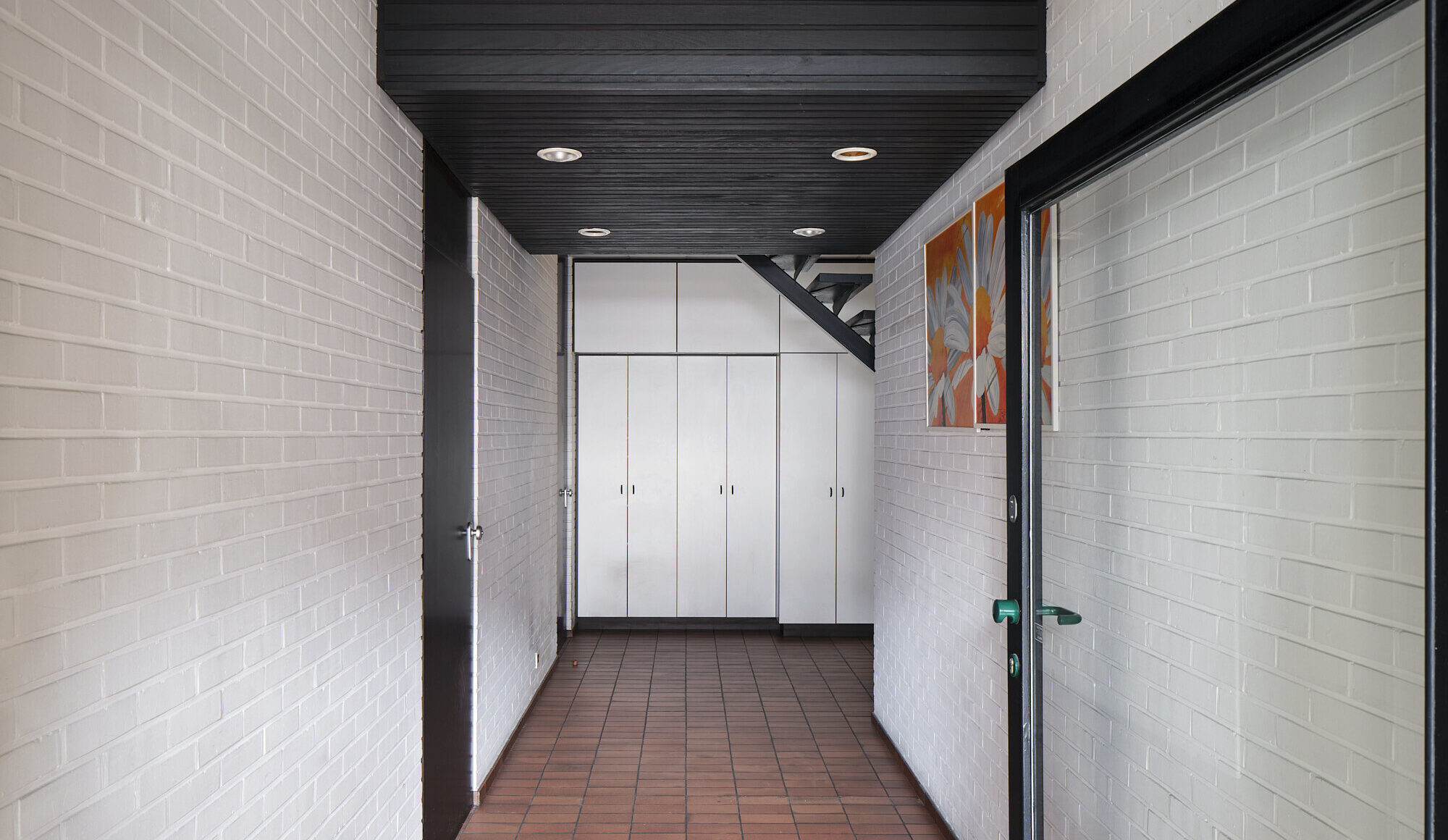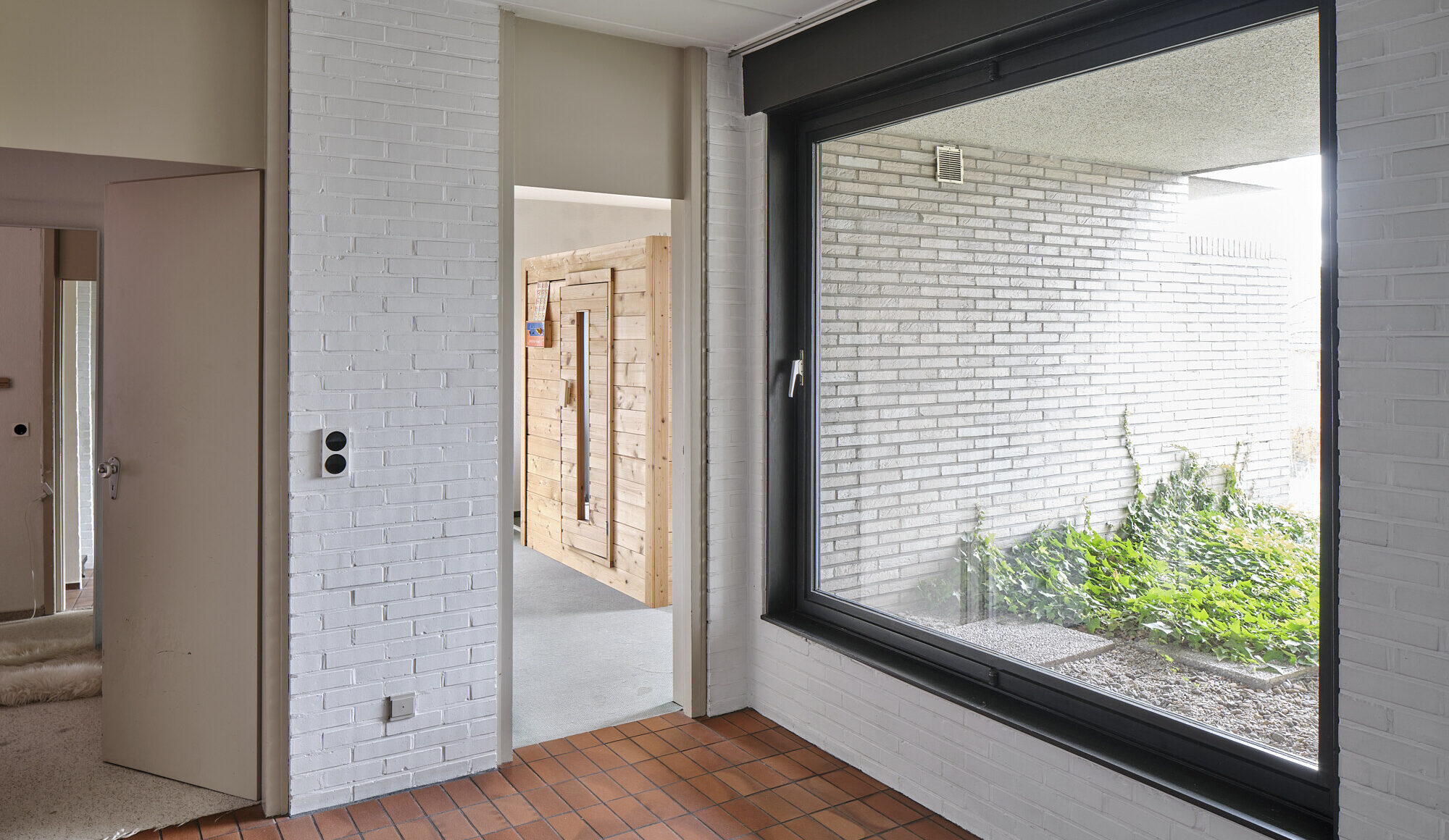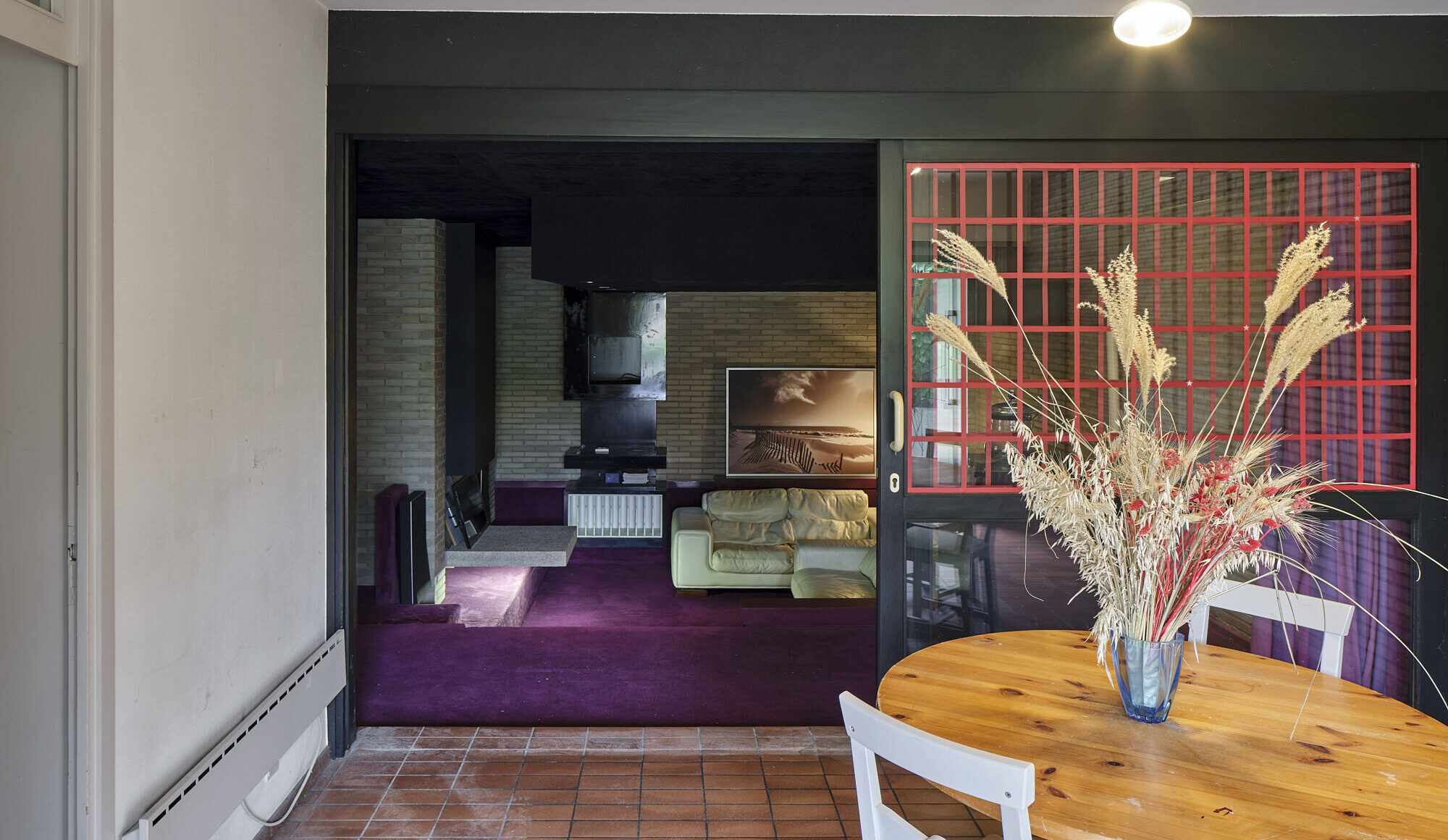 À l’intérieur, les volumes s’enchaînent avec une fluidité rare. La structure en split-level insuffle un rythme architectural où chaque fonction — vivre, cuisiner, travailler, se détendre — trouve naturellement sa place. Les grandes baies vitrées laissent pénétrer généreusement la lumière, tandis que la brique, l’acier noirci et le bois chaleureux ancrent l’ensemble dans une esthétique intemporelle.