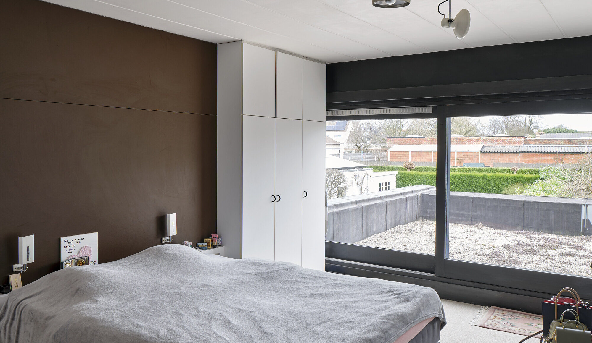 Située sur l’élégante avenue Léopold à Alost, sur un terrain de 850 m², cette habitation semi-mitoyenne révèle d’emblée la main de l’architecte. Conçue par Etienne Wijns (e2r-architecten), elle incarne une monumentalité discrète, une présence affirmée mais jamais ostentatoire — un dialogue fluide entre volumes, lumière et matières.