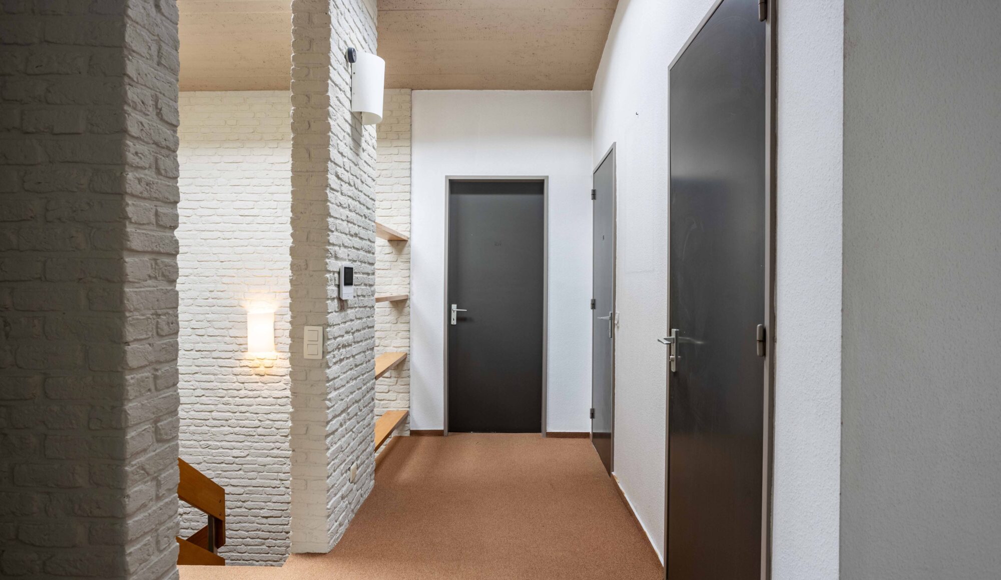 De bovenste verdieping telt zes afzonderlijke ruimtes en een badkamer – maar bovenal: een indrukwekkende oppervlakte en een plan dat vele mogelijkheden biedt. De centrale nachthal wordt verlicht door een elegante lichtkoepel en geeft toegang tot een apart toilet. Dankzij de omvang is flexibiliteit troef, geheel naar eigen behoefte en ritme.